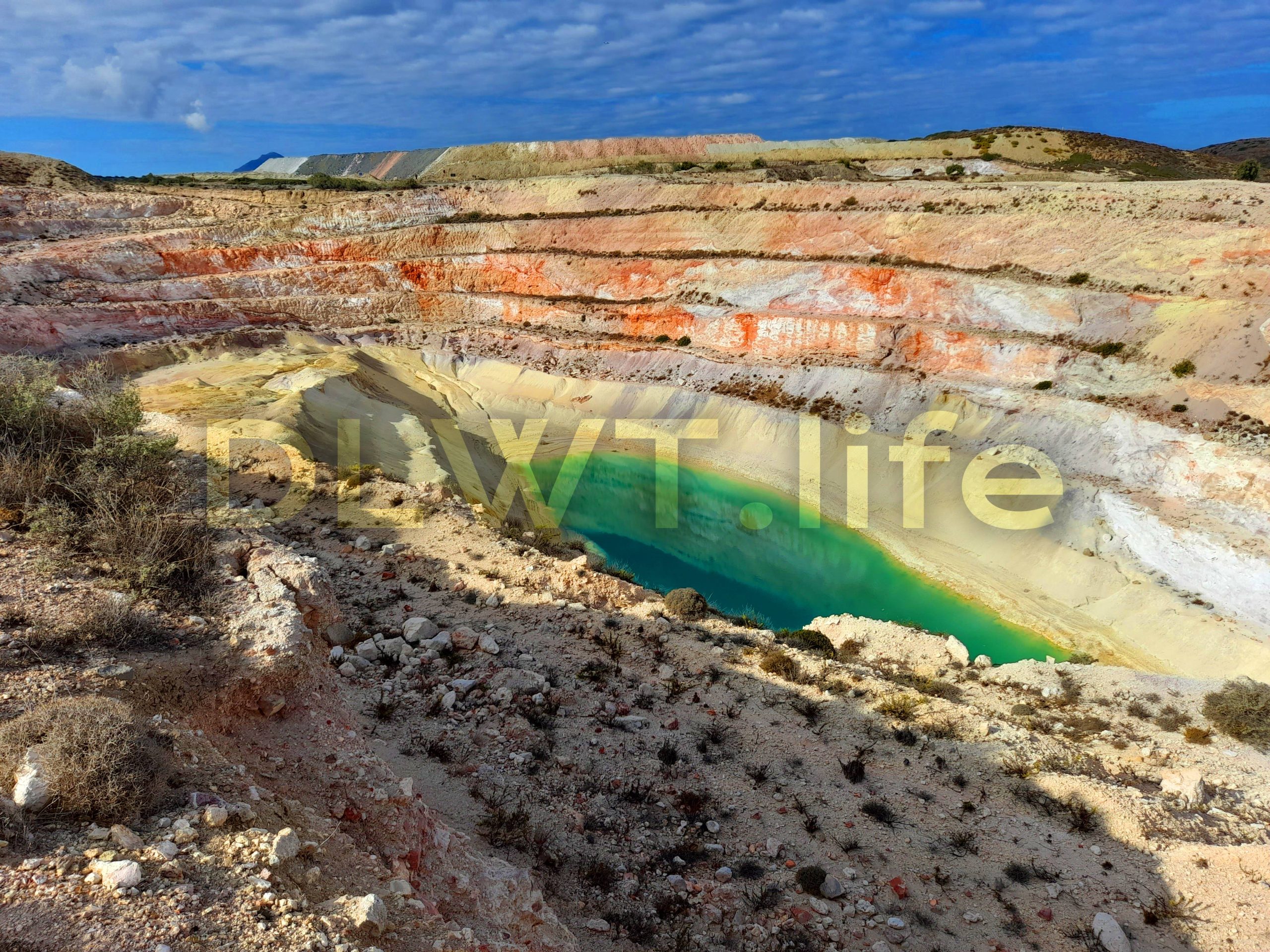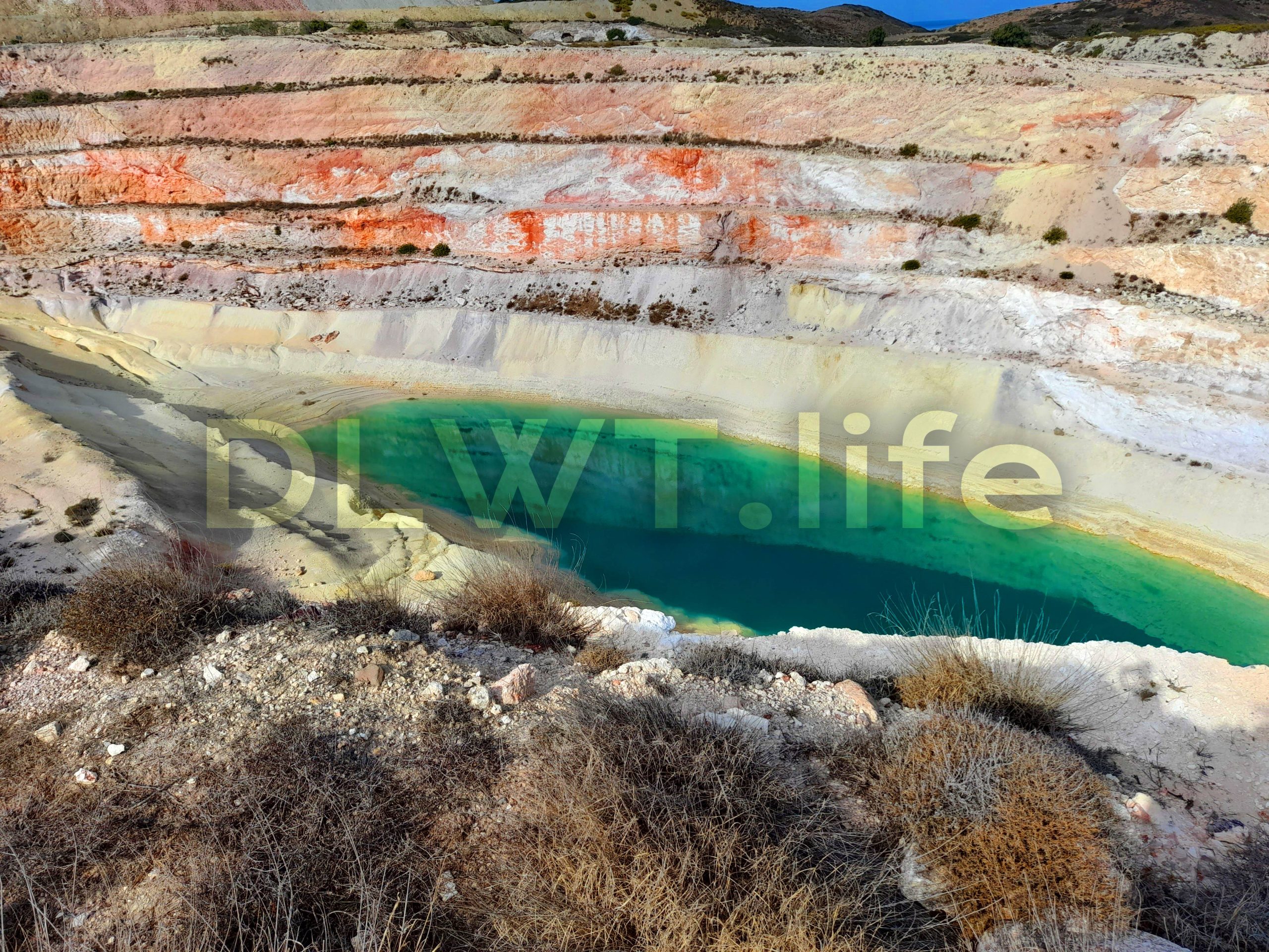 The acidic lake of sulfur mine is in the northeast of Milos island in Greece.