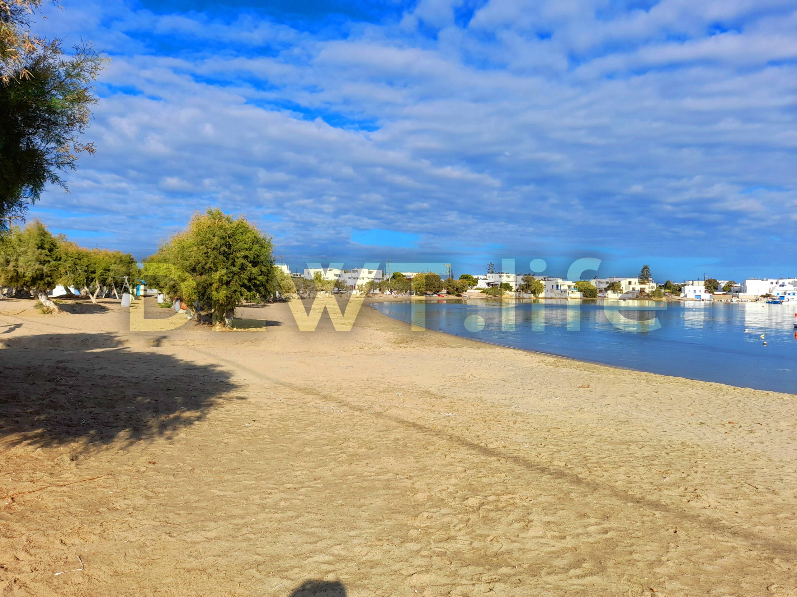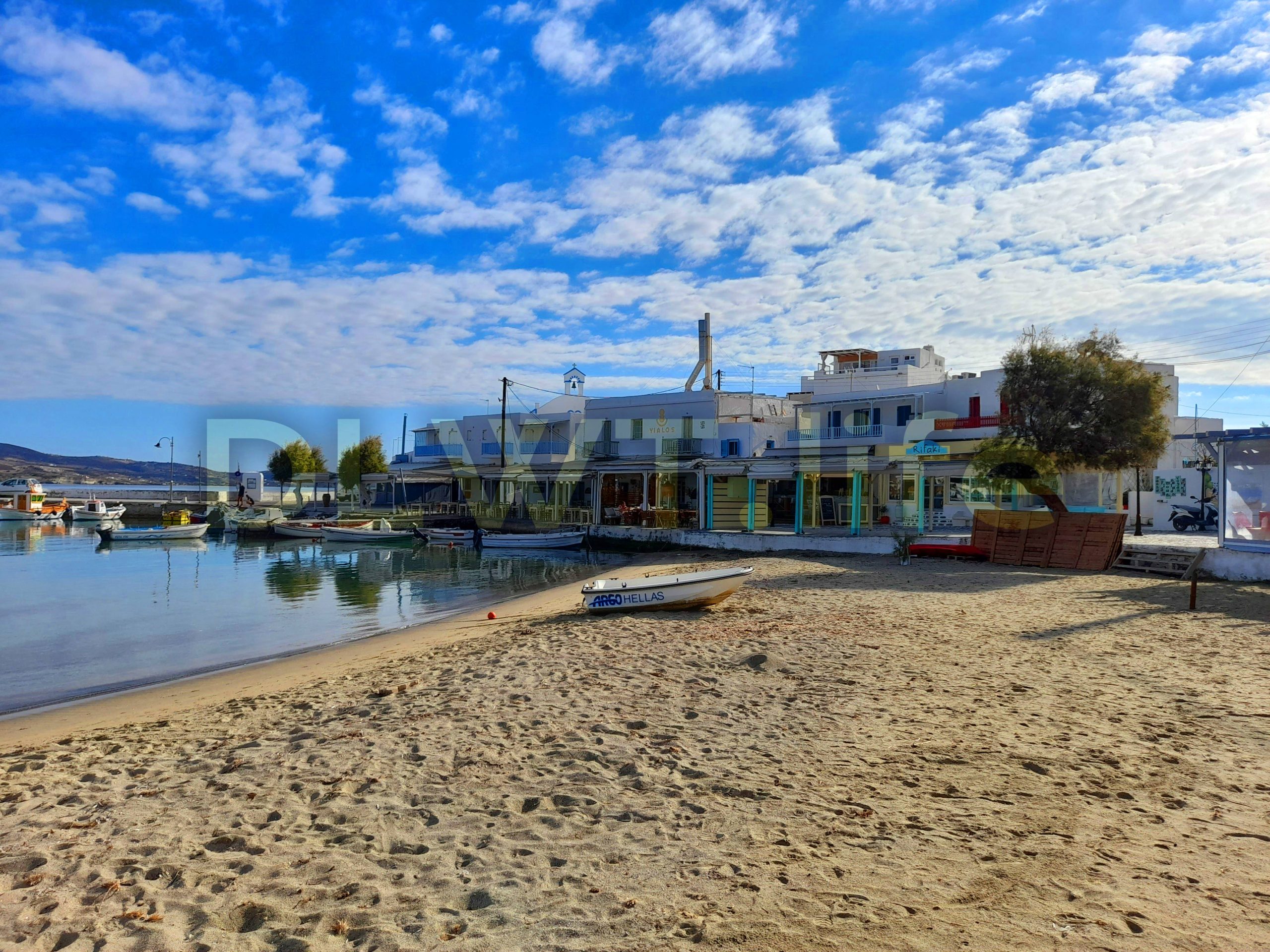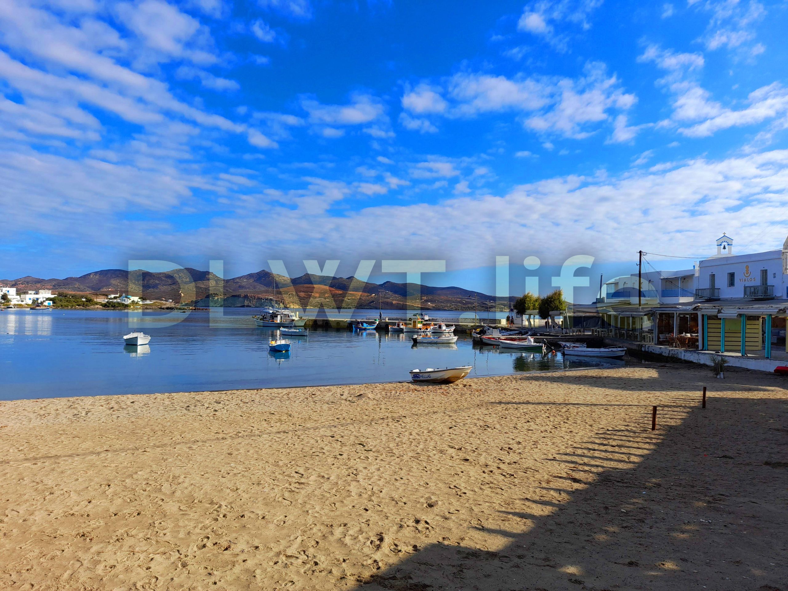 Pollonia beach is in the northeast of Milos island in Greece.